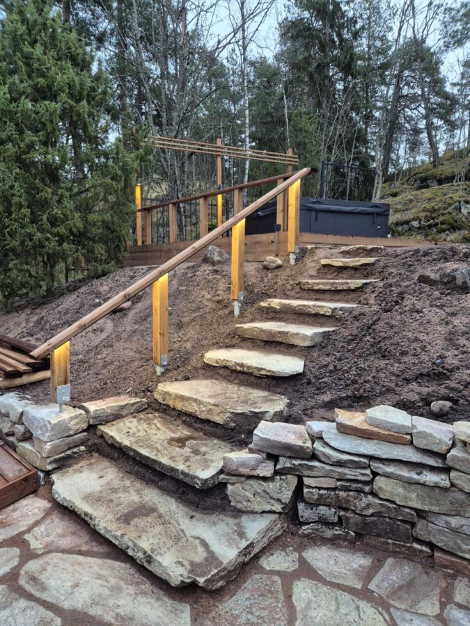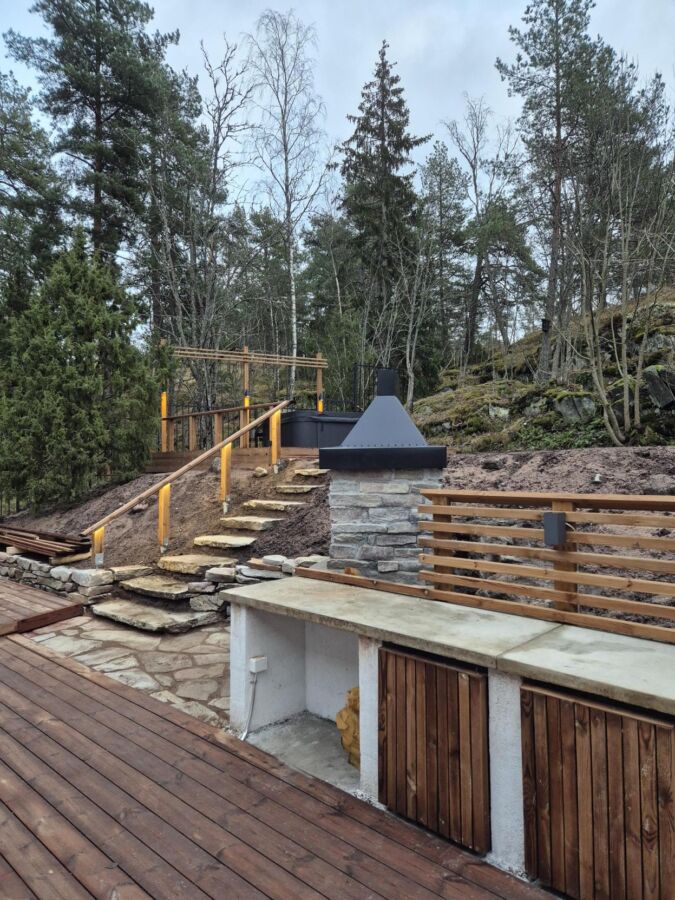 Tämä on kauden 2025 viimeinen toteutuksemme, jonka pariin palaamme istutuksin keväällä 2026. Tämän kohteen vaativat puu- ja kivirakenteet syntyivät huolellisen suunnittelun ja taidokkaan käsityön yhteistyönä. Pihan keskipisteenä toimivat erikoismallinen terassi, näyttävä tulisija sekä kesäkeittiö, joka kutsuu yhdessäoloon perheen ja ystävien kesken.